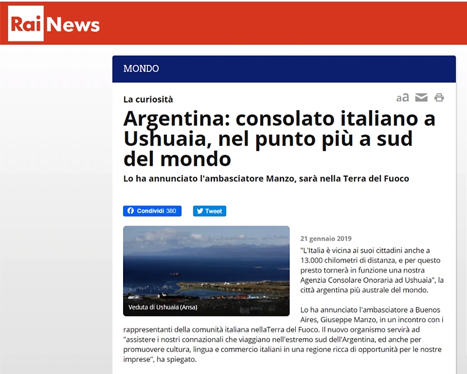 Agenzia Consolare O. d’Italia a Ushuaia – Agencia Consular H. de Italia en Ushuaia