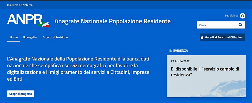 🔴 Certificati anagrafici rilasciati on line dai Comuni italiani, cambio di residenza tra Comuni e rimpatrio in Italia (per iscritti AIRE). Link: https://www.anagrafenazionale.interno.it/