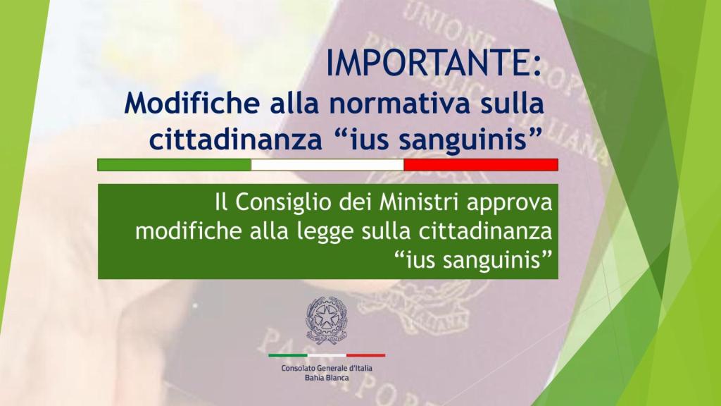 31/03/2025 | IMPORTANTE: El Consolato Generale d’Italia en Bahia Blanca informa “Modifiche alla normativa sulla cittadinanza ius sanguinis”. Link: https://consbahiablanca.esteri.it/es/news/dal_consolato/2025/03/importante-modificaciones-en-la-normativa-sobre-la-ciudadania-ius-sanguinis/