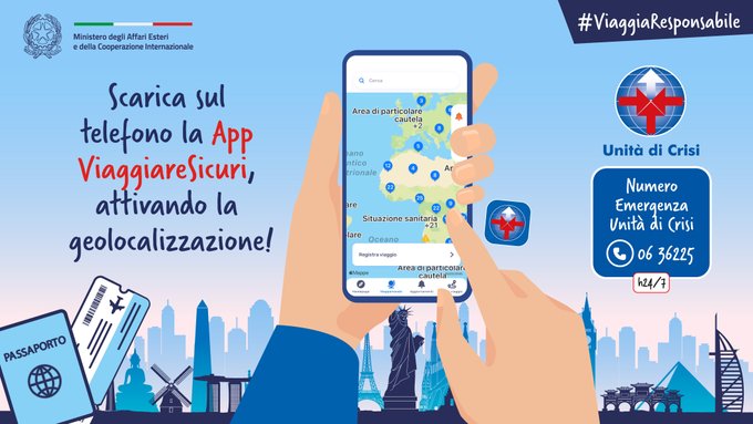 #ViaggiaResponsabile con l’app di #ViaggiareSicuri! Geolocalizzati, ricevi notifiche su aree a rischio, aggiornamenti in tempo reale su pericoli e conferma la tua incolumità in caso di emergenza. Scarica l’App https://viaggiaresicuri.it/download-app