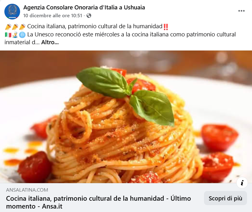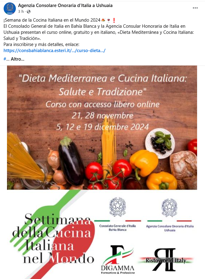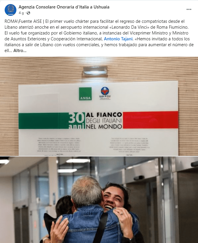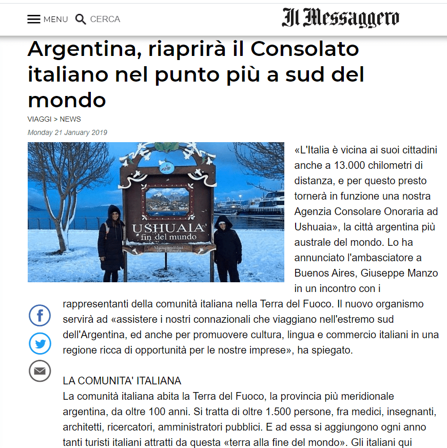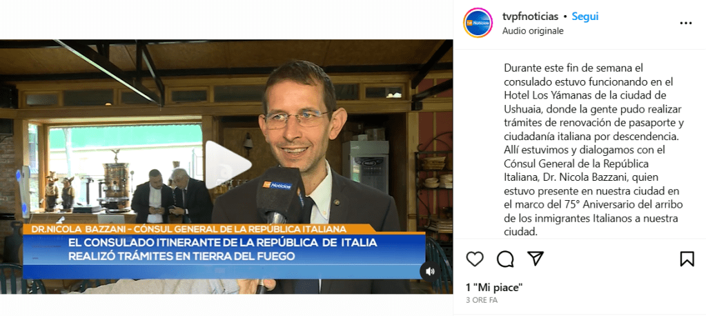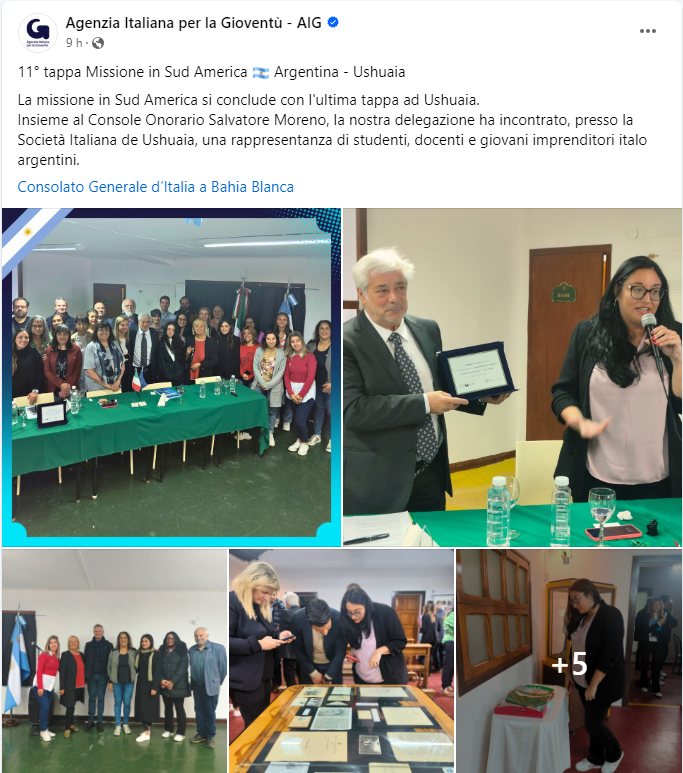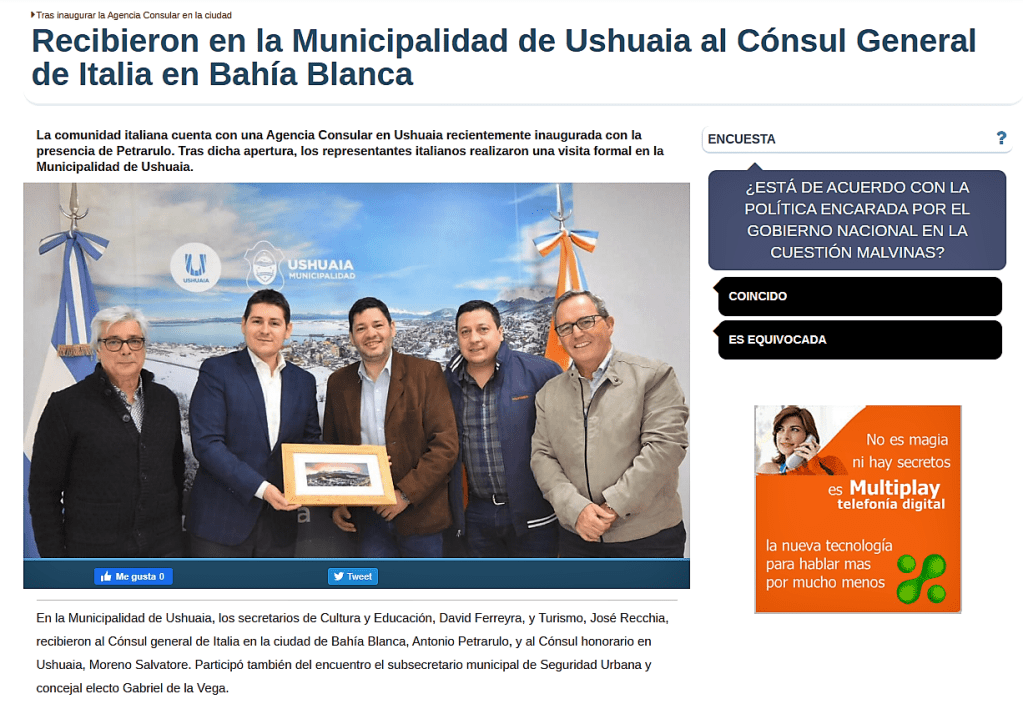 Facebook, link: https://www.facebook.com/agconsolareoditaliaushuaia/posts/pfbid0A1h7s3WyW8a5XzQHCPFKswdF1rxmVmoBhyWJbNTQfuvCzTRgh8sRuDy9tbDLatq8l