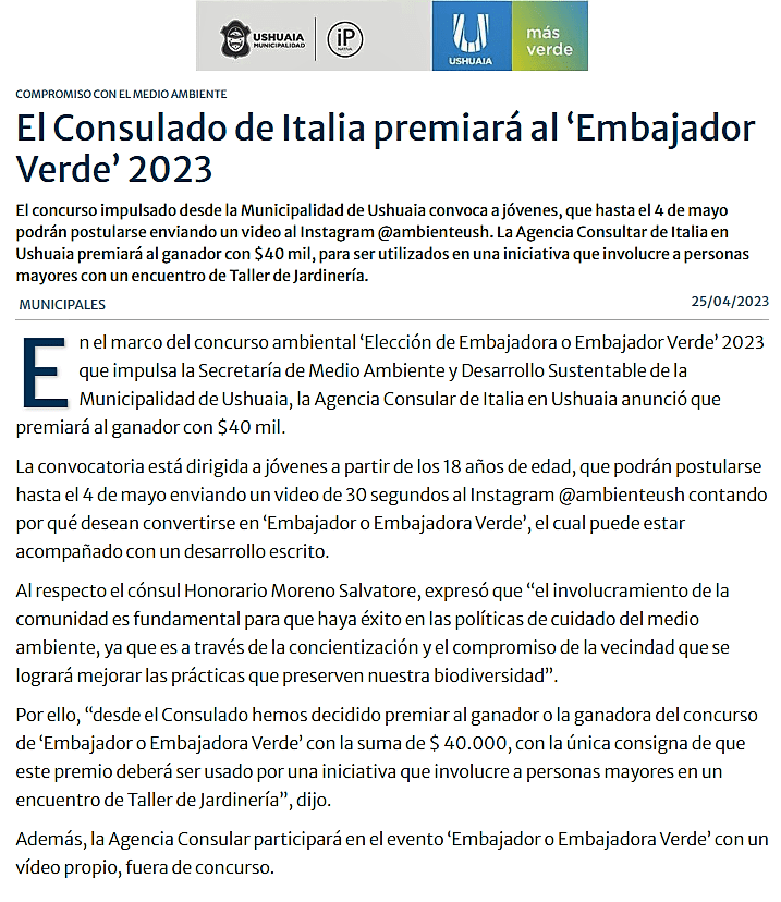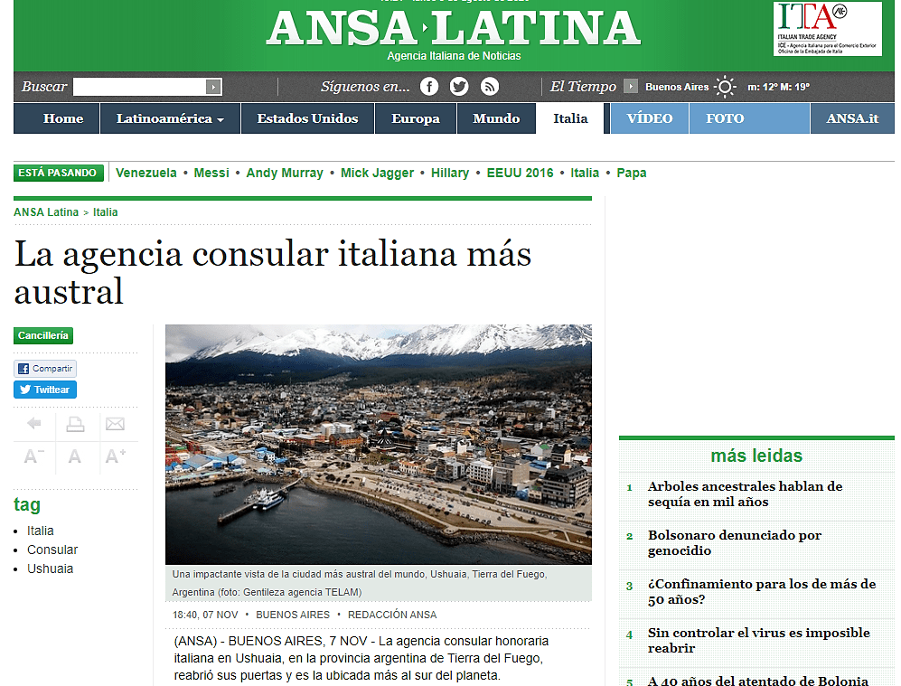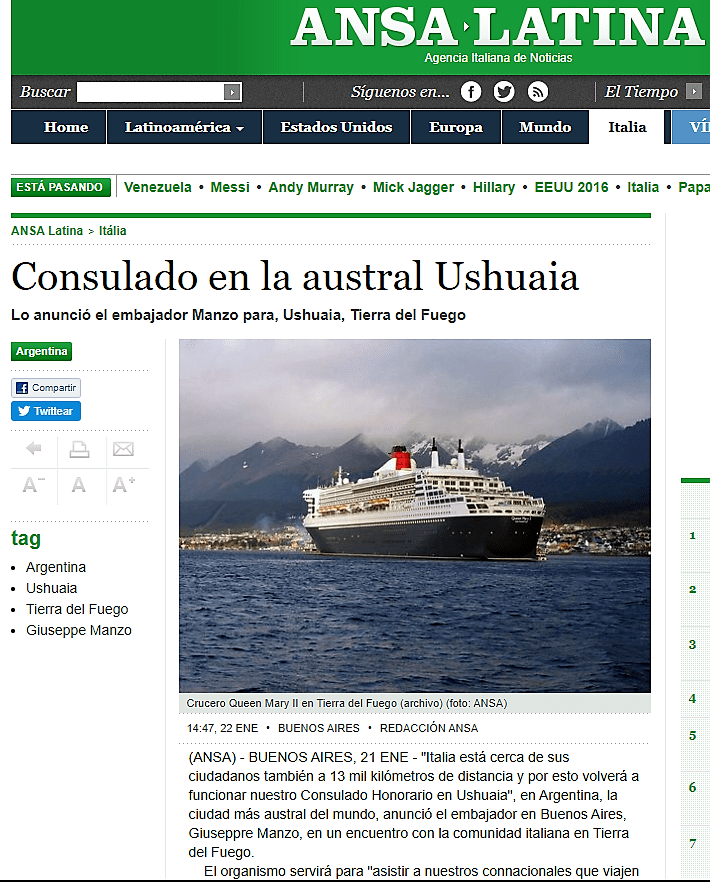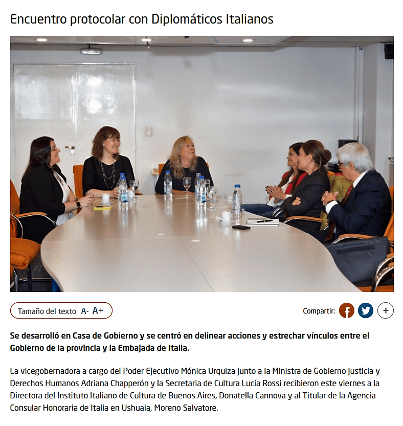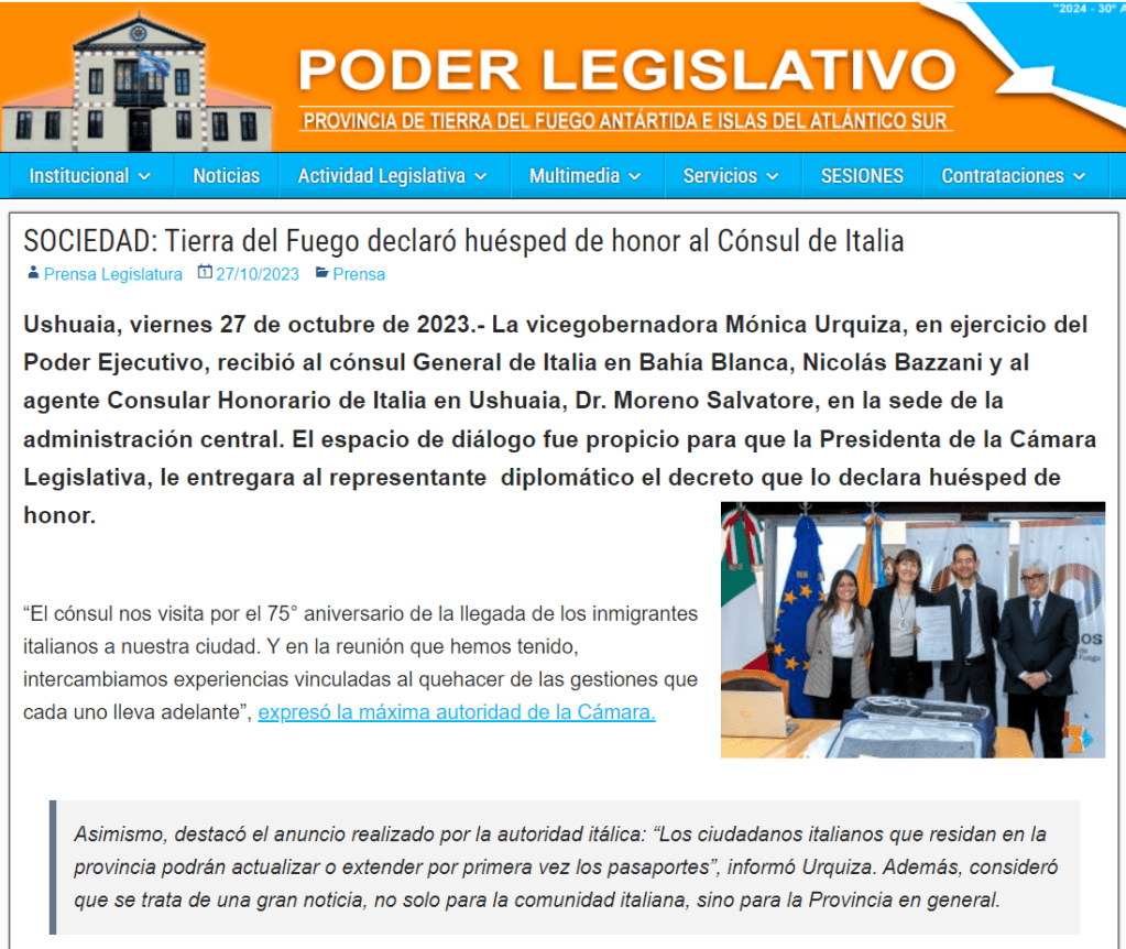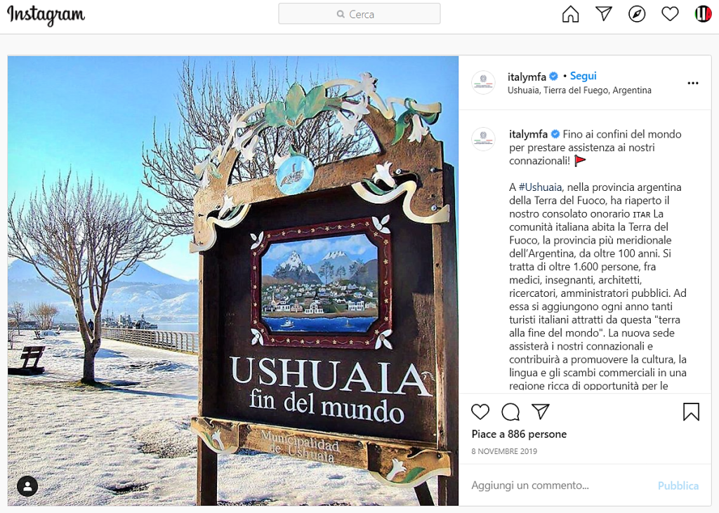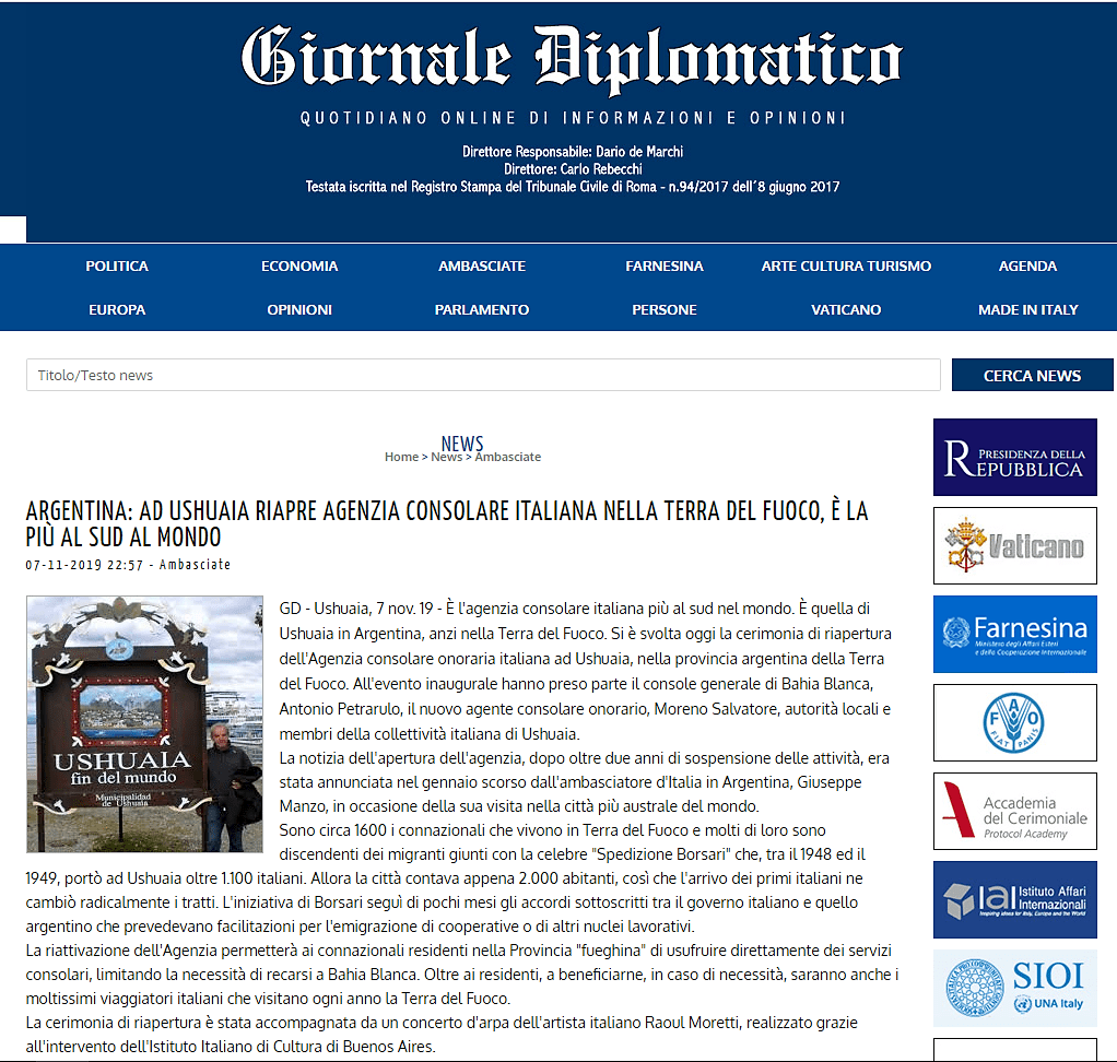 Facebook, link: https://www.facebook.com/agconsolareoditaliaushuaia/posts/pfbid0A1h7s3WyW8a5XzQHCPFKswdF1rxmVmoBhyWJbNTQfuvCzTRgh8sRuDy9tbDLatq8l
