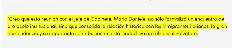 •“Buenos días, Salvatore. Le informo que regresamos a Italia, ya que mi padre ha obtenido la autorización para volar. Aprovecho la ocasión para agradecerle a usted y a sus colegas la asistencia consular en Argentina. En el ejercicio de sus funciones, las personas que me han ayudado se han distinguido por su compromiso y amabilidad. Gracias por su apoyo.”