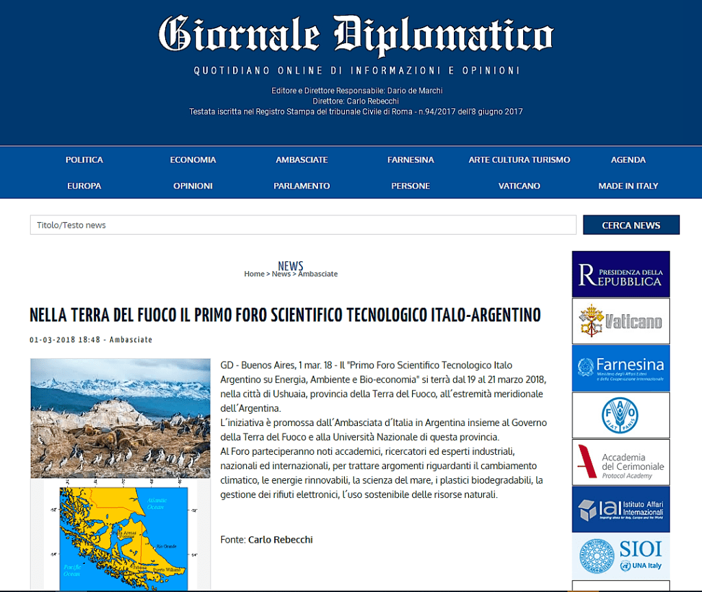 🔴 Marzo 2018. Il “Primo Foro Scientifico Tecnologico Italo Argentino su Energia, Ambiente e Bio-economia” fu un evento di grande risonanza in Argentina. Vi partecipai pur non avendo all’epoca alcun incarico funzionale del MAECI.