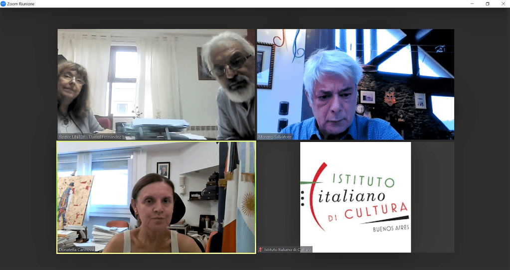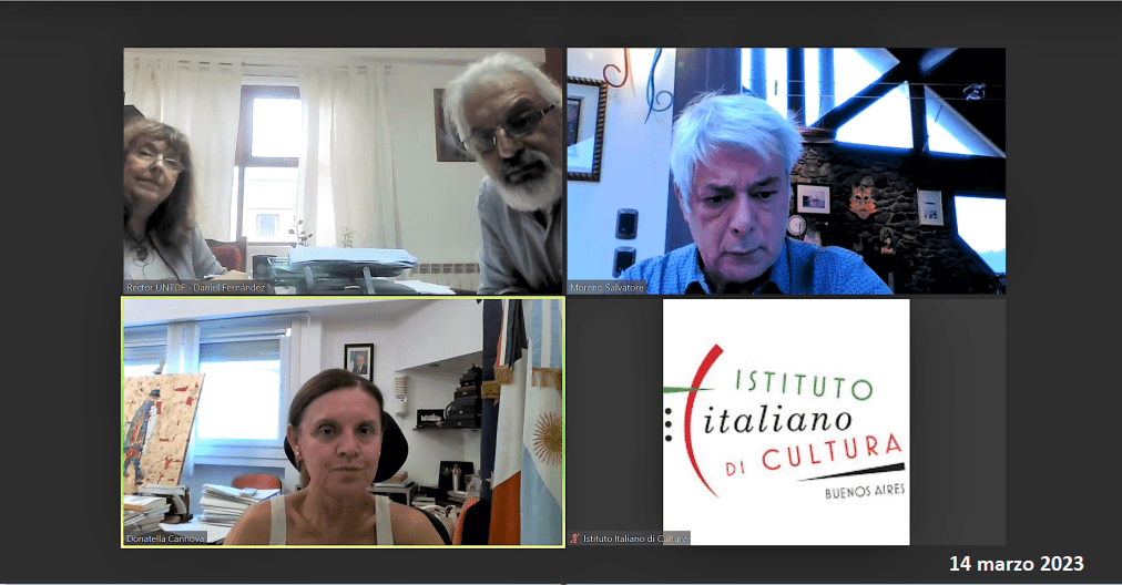 • Reunión en la UNTDF con el nuevo Rector, Dr. Mario Hermida, para dialogar sobre la reanudación de los cursos de italiano y presentar la visita a Ushuaia de las responsables del estudio creativo That’s a Video, autoras del video “ALLA FINE DEL MONDO – Il futuro italiano oltre l’oceano”.