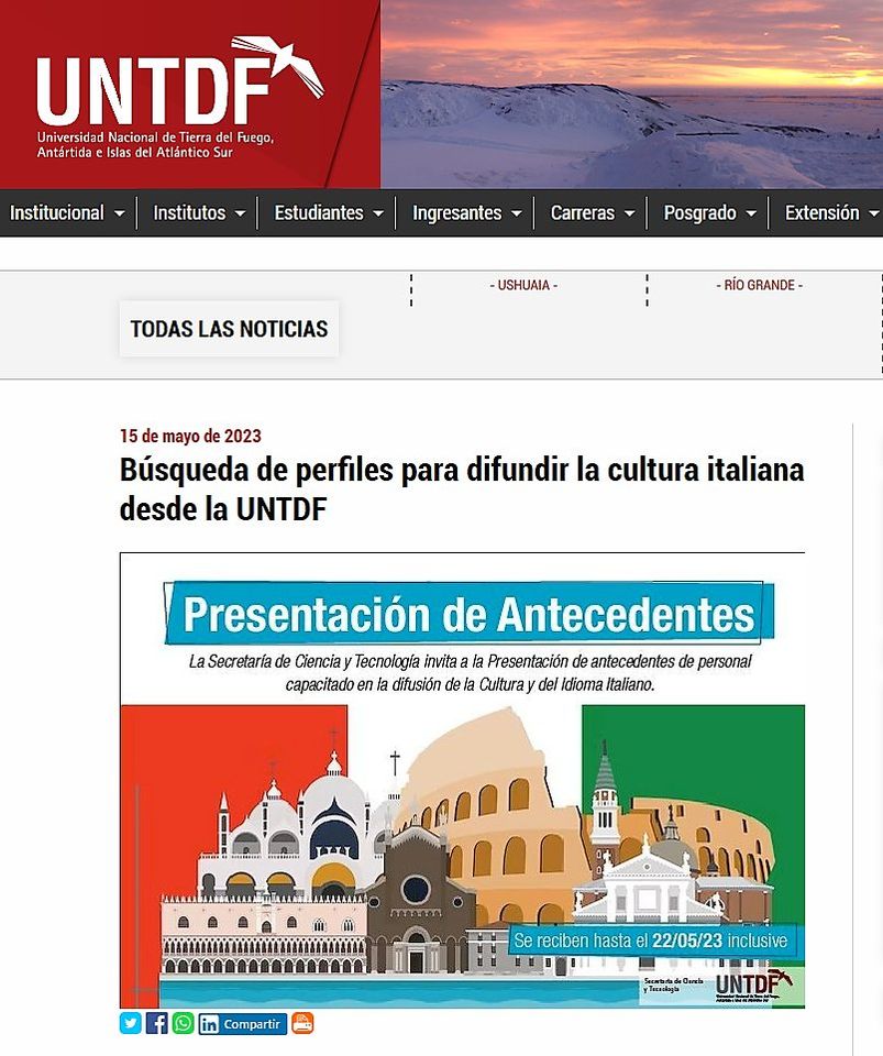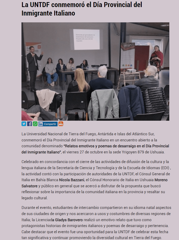 🔴14 de noviembre de 2025: Visita a la UNTDF en Ushuaia, el ateneo donde se imparten cursos de lengua y cultura italiana dirigidos a la comunidad universitaria.