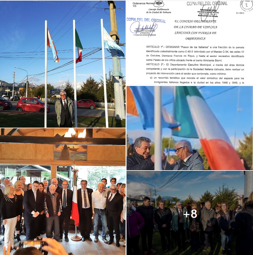 La prima cosa di cui istituzionalmente mi occupai fu a favore dell’applicazione di una ordinanza del Consiglio deliberante del Municipio di Ushuaia, del 2013, di fatto giacente. Il progetto, chiamato “Paseo de los Italianos”, nasceva da una idea dell’architetto Leonardo Lupiano – attuale presidente della Sociedad Italiana de Ushuaia – che in un incontro mi aveva illustrato sia il disegno che il proposito dell’opera purtroppo non realizzata. L’idea era molto interessante, realmente dovuta vista la forte impronta italiana che la città di Ushuaia ha dal 1948/1949 (con l’arrivo degli oltre 1000 lavoratori dell’impresa costruttrice italiana Borsari) e dovuta anche per la forte crescita impulsata dal lavoro qui poi svolto da quegli italiani che non rientrarono in Patria, che qui si radicarono e dai loro discendenti.
