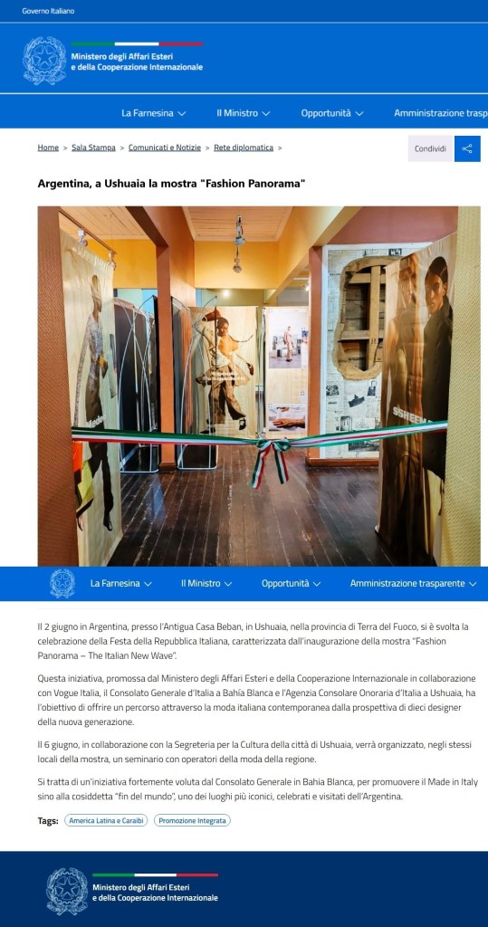 🔴 29 maggio 2025 | Ushuaia nelle pagine Diplomazia Culturale del Ministero degli Affari Esteri e della Cooperazione Internazionale dell’Italia e Rete Diplomatica dell’AISE (Agenzia Internazionale di Stampa Estera). Link: