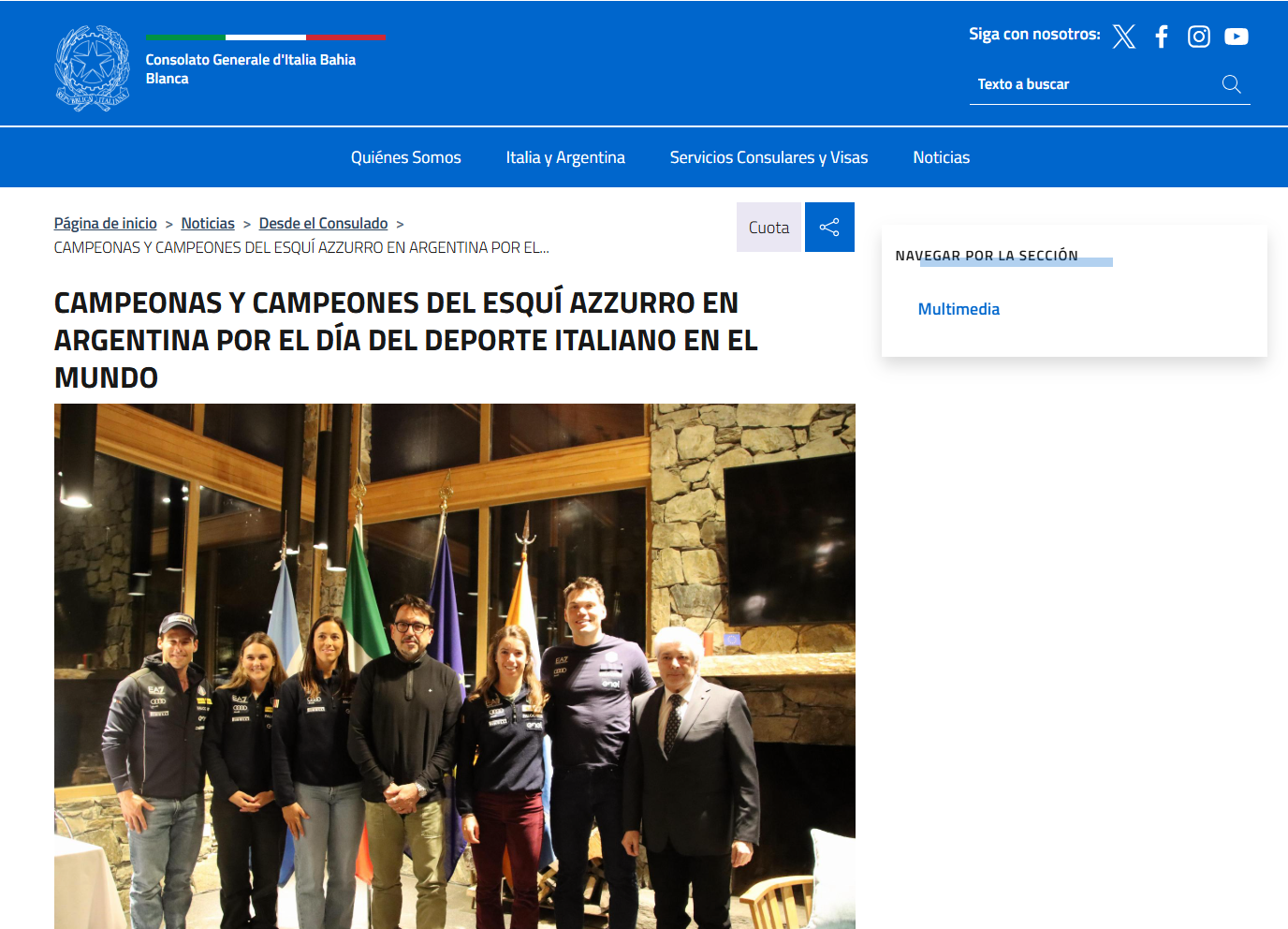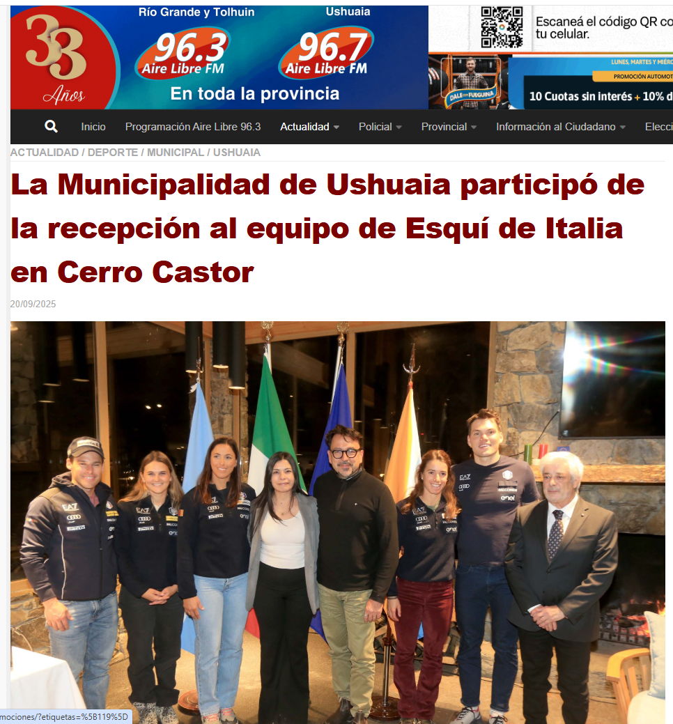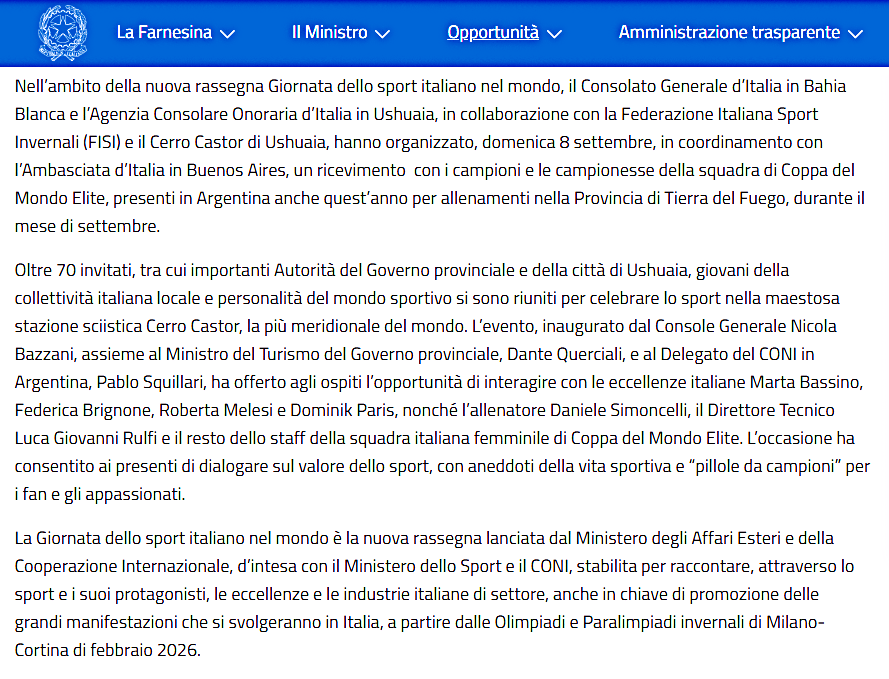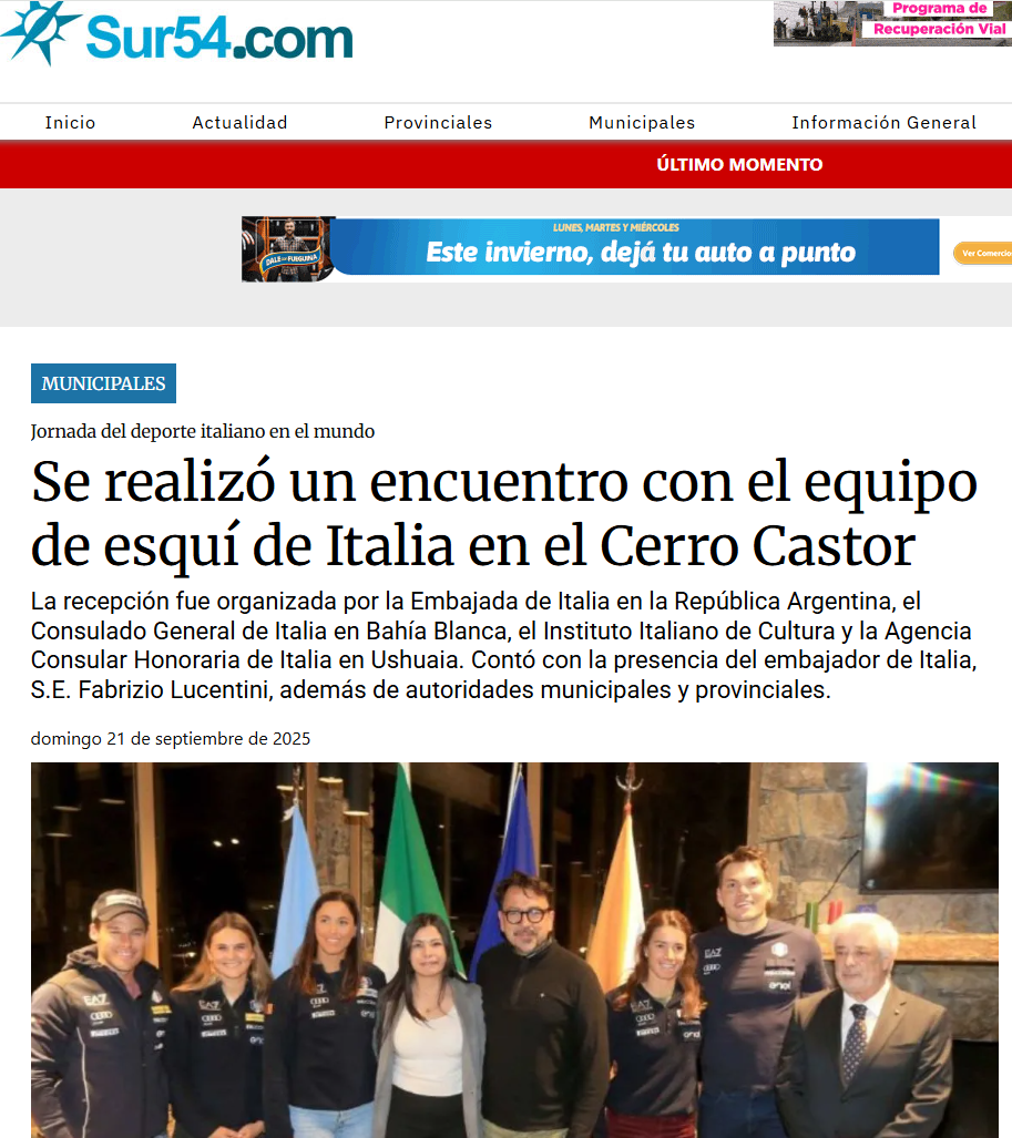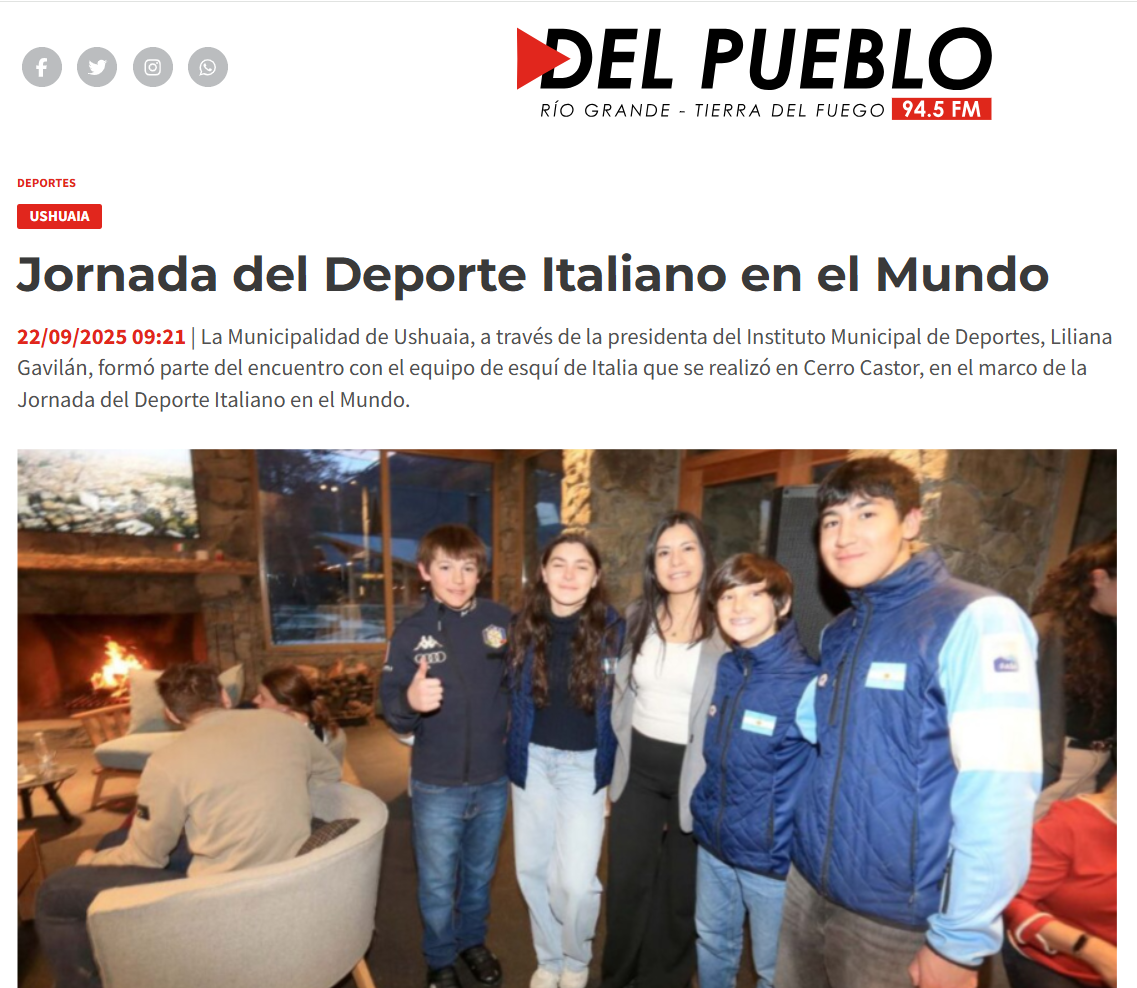 🔴 13 settembre 2025 | La Oficina Consular H. de Italia en Ushuaia, además de promover la historia y la cultura italiana en las redes sociales, también dedica sus canales al deporte en celebración del Día del Deporte Italiano en el Mundo, que culminará con un evento en el cercano centro de esquí Cerro Castor.