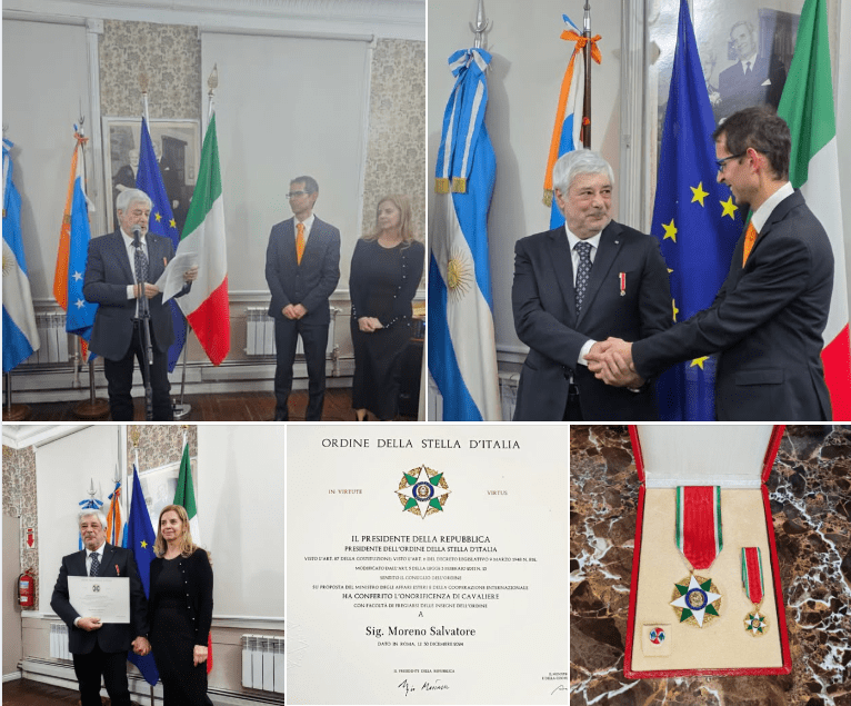 🔴 16 maggio 2025, Ushuaia, Antigua Casa Beban | Me siento profundamente honrado de recibir la insignia y el diploma de Cavaliere de la Orden de la Stella d’Italia. Este honor no es simplemente un premio a mi trabajo, es un reconocimiento que me motiva a seguir sirviendo a mi País con compromiso y dedicación. Quiero dar las gracias a todos los que han hecho posible este momento.