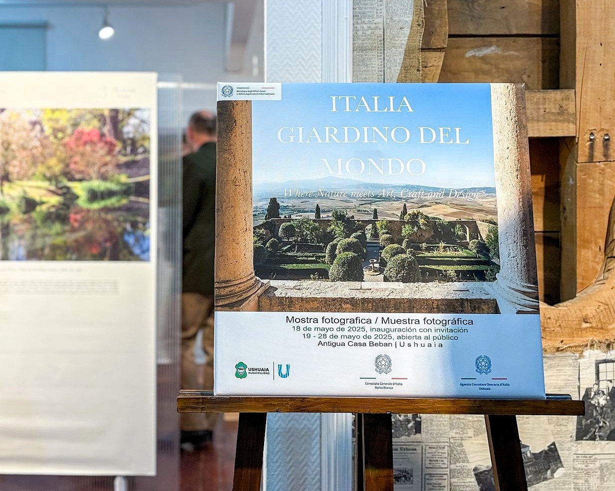 🔴 27 maggio 2025, Ushuaia, Antigua Casa Beban | Ayer, en la Antigua Casa Beban de Ushuaia, tuvo lugar un encuentro cultural en el marco de la exposición fotográfica “Italia, Giardino del Mondo”. La actividad contó con la presencia de los profesores Bergis, Cavallotti y Real y sus alumnos de italiano, además de la Secretaría de la Sociedad Italiana en Ushuaia, totalizando 43 asistentes. Los presentes recorrieron la exposición fotográfica, recibiéndola con comentarios muy favorables. Destacó el asombro de muchos ante la diversidad de formas y soluciones artísticas de los jardines italianos, tal como se aprecian en las imágenes que abarcan desde el Renacimiento hasta la actualidad.