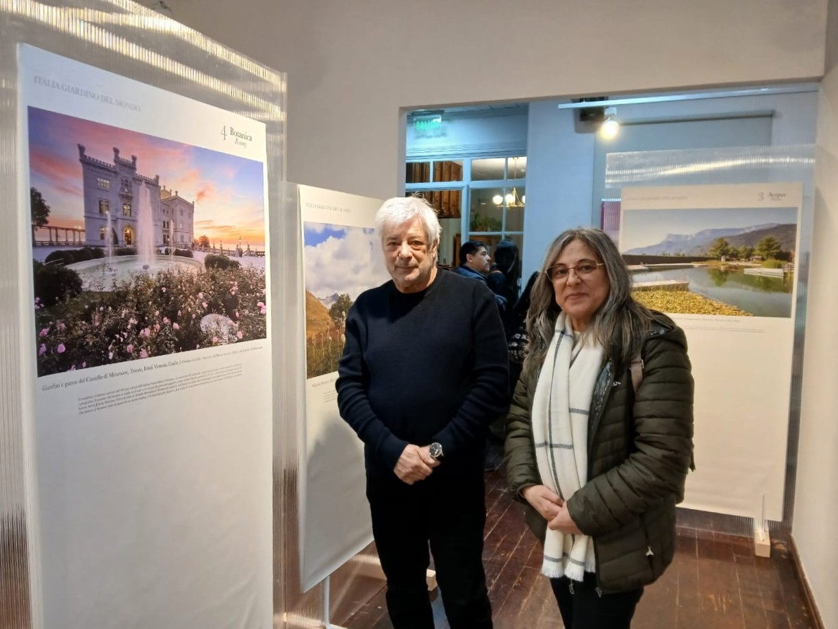 “Buongiorno a tutte e a tutti. È per me un grande piacere essere oggi qui a Ushuaia, per inaugurare insieme a voi la mostra “Italia Giardino del Mondo”. E sono particolarmente felice di condividere questo momento con un gruppo speciale: voi, studenti di italiano, e i vostri professorI, che vi accompagnano in questo percorso di scoperta della lingua e della cultura italiana. Oggi abbiamo l’opportunità di esplorare una parte affascinante del nostro patrimonio culturale: i giardini italiani. Questa mostra nasce da un profondo amore per i giardini che, da secoli, rappresentano un simbolo della bellezza, dell’arte e della storia dell’Italia. Già nei secoli passati, grandi scrittori come Dante e Petrarca, e famosi viaggiatori come Goethe e Stendhal, descrivevano l’Italia come un immenso giardino. E in effetti, i giardini italiani hanno sempre avuto un legame strettissimo con l’arte, l’architettura, la scienza e la filosofia. La mostra che vedrete oggi non segue un ordine cronologico. È organizzata attorno a sette temi principali, che ci aiutano a capire come i giardini si inseriscono nel paesaggio, come vengono progettati, come viene usata l’acqua, come si studiano le piante, come dialogano con altre forme d’arte. Essendo fiorentino, mi fa piacere vedere la bellezza del paesaggio e dei giardini del Chianti e delle numerose ville attorno a Firenze: luoghi straordinari, ricchi di sentieri, fontane e sculture. Un altro esempio importante è quello del Palazzo Reale di Caserta, vicino a Napoli, con i suoi giardini che si estendono per chilometri, pieni di fontane e giochi d’acqua, testimonianza dell’eleganza e dell’ingegno del Settecento italiano. Abbiamo scelto Ushuaia per questa inaugurazione perché la sua bellezza naturale rappresenta perfettamente lo spirito della mostra: l’amore per la natura, l’arte e l’armonia tra l’essere umano e l’ambiente.