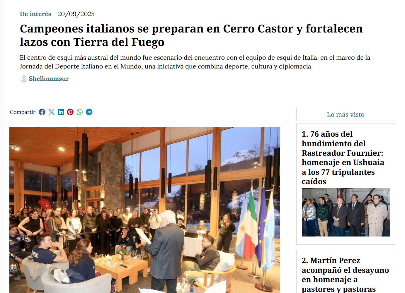 🔴20 de septiembre de 2025: Ieri, a Ushuaia, un piacevole evento con l’Ambasciatore della Repubblica Italiana in Argentina, S.E. Fabrizio Lucentini, giunto sin qui per celebrare la seconda edizione della “Giornata dello Sport Italiano nel Mondo”.