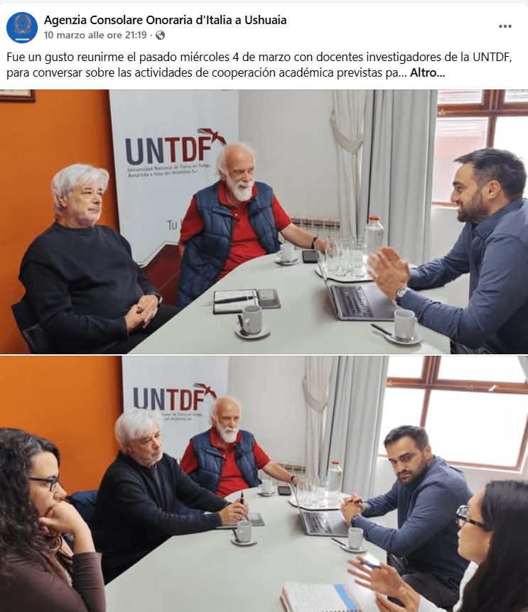 🔴12 de marzo de 2026 | Investigación científica y cooperación internacional entre la Universidad La Sapienza de Roma y la UNTDF de Tierra del Fuego. Link: https://www.facebook.com/agconsolareoditaliaushuaia/posts/pfbid0EfHzrv6zVXKcczaazhfWYC8fySWkk3ATHrRFgdBGCvCGhfPVFPPZQWtLaBdWAyj9l