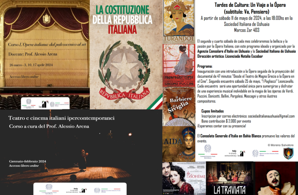 Desde julio de 2023, con el apoyo del Cónsul General Nicola Bazzani, vengo trabajando intensamente para organizar y proponer cursos online gratuitos de lengua italiana, teatro y ópera lírica. (Nota: la tradición operística italiana fue inscrita en la Lista del Patrimonio Inmaterial de la UNESCO en diciembre de 2023). Esta elección se fundamentó no solo en el deseo de ofrecer una mayor difusión de la Dolce Lingua y del Bel Canto, sino también para señalar cuán apegados estamos los italianos a nuestra cultura y arte.